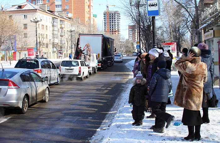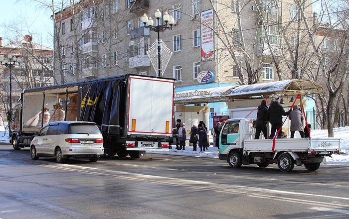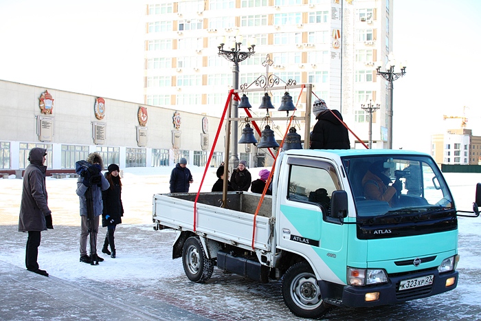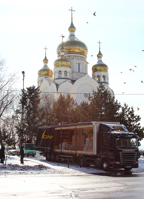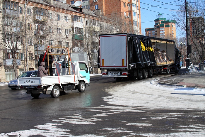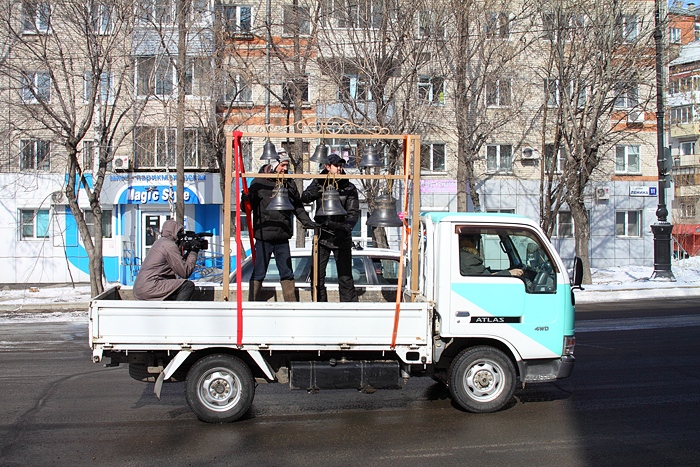 Звонница для Южно-Сахалинского храма проследовала по центру Хабаровска. 9 марта 2014 года