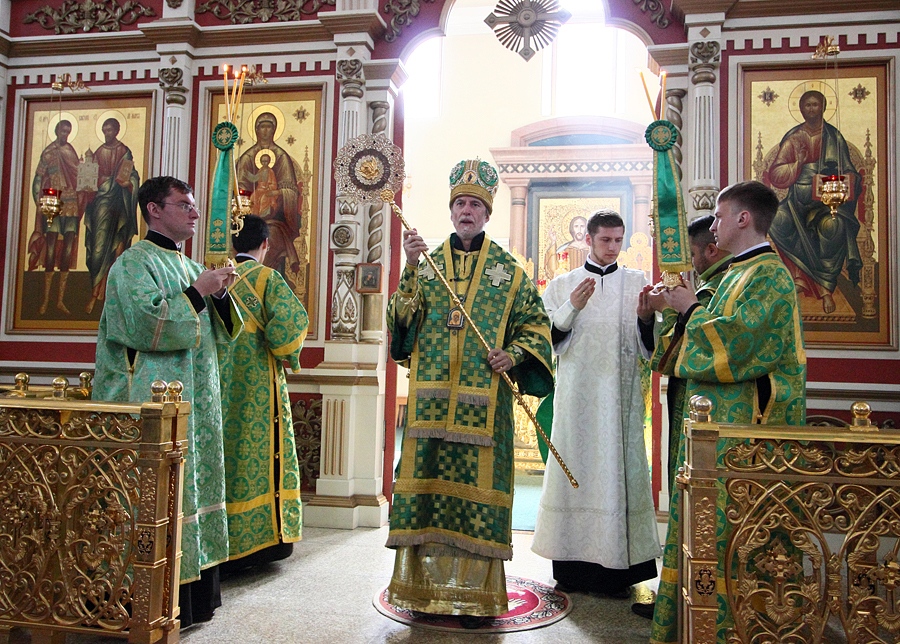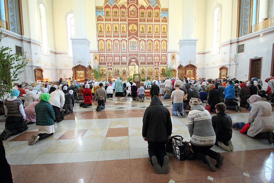 Диаконская хиротония Андрея Бузука. Чтение коленопреклонённых молитв в Спасо-Преображенском кафедральном соборе в день Святой Троицы. 31 мая 2015 г.