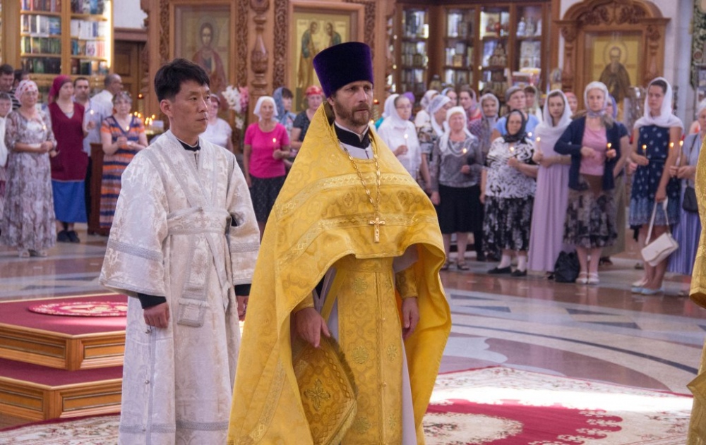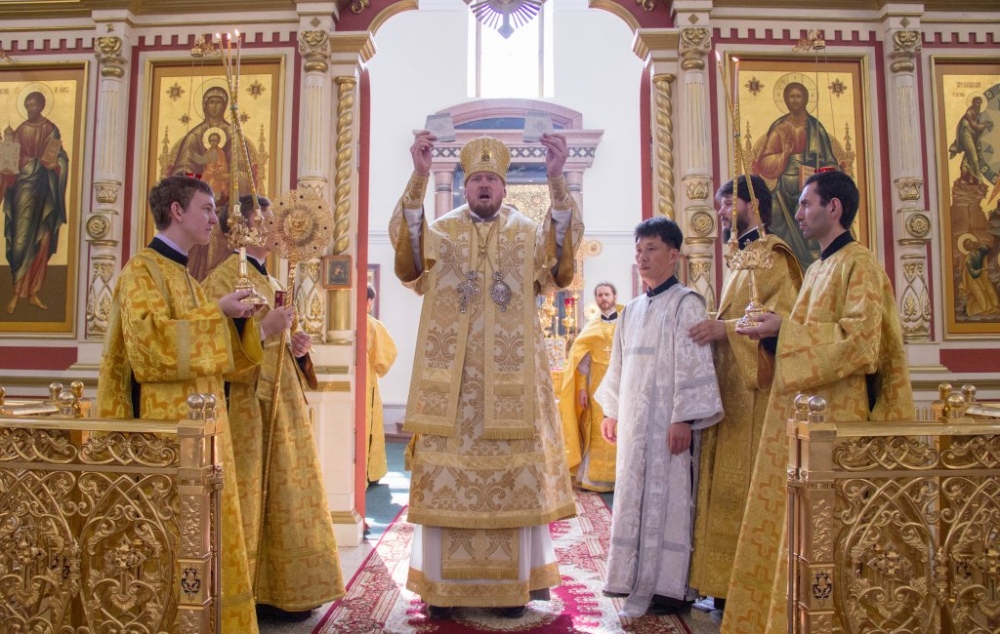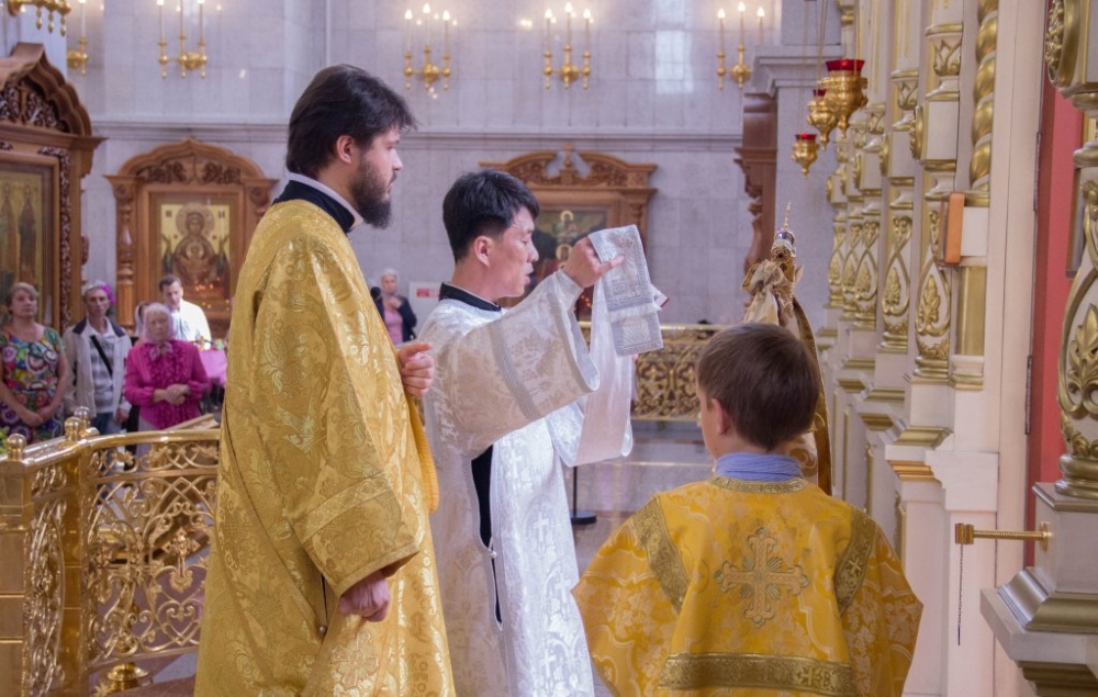 Митрополит Владимир совершил за Божественной литургией диаконскую хиротонию студента Хабаровской семинарии из Северной Кореи 29 июля 2018 года.