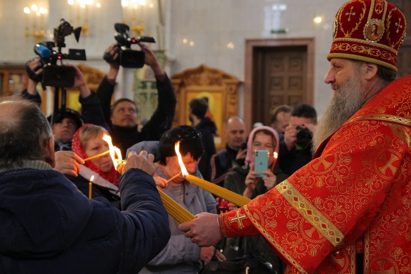 Во вторник Светлой седмицы митрополит Артемий возглавил Божественную литургию в кафедральном соборе Хабаровска 26 апреля 2022 года