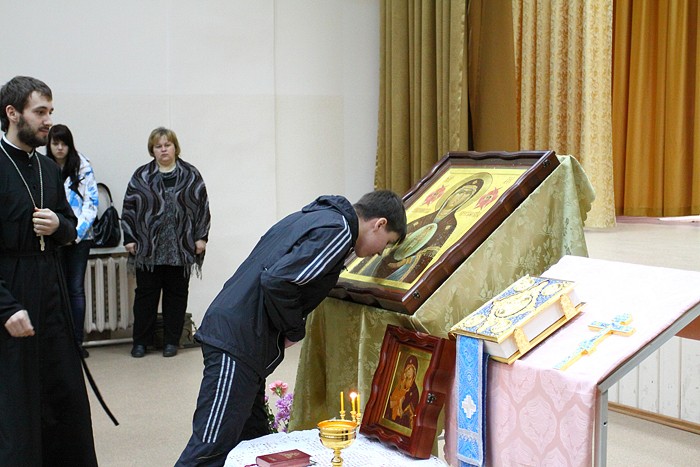 Освящение Албазинской иконы Богородицы в Судостроительном колледже г.Хабаровска. 9 марта 2012 г.